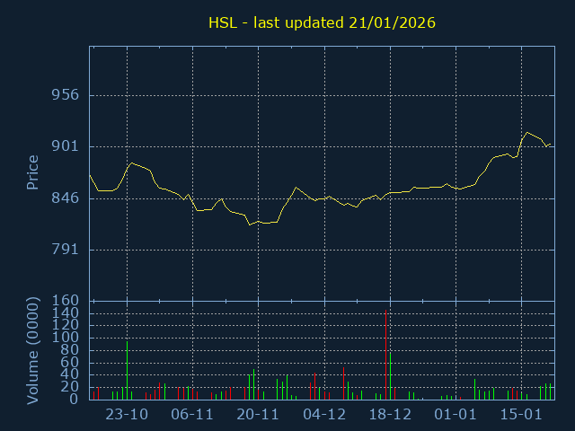 Price ranges from 870 to 1052 representing a 20.92% trading range