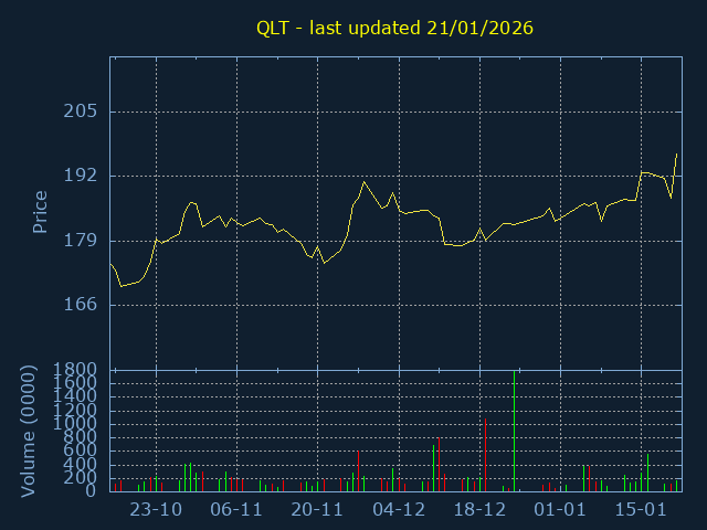 Price ranges from 185 to 298 representing a 61.08% trading range