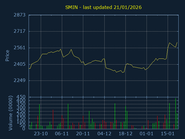 Price ranges from 2250 to 2510 representing a 11.56% trading range