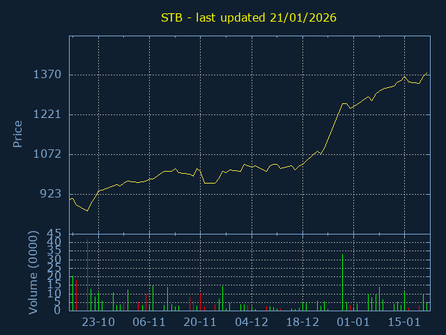 Price ranges from 995 to 1430 representing a 43.72% trading range