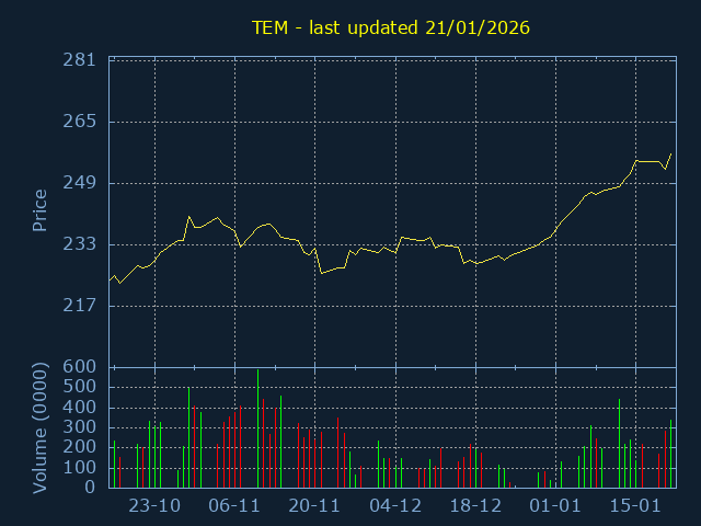 Price ranges from 228 to 259 representing a 13.60% trading range