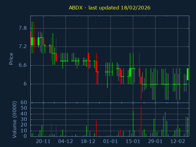 Click here for ABDX Candlestick History