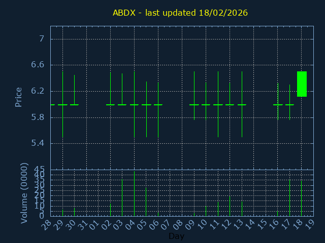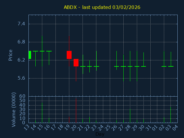 Click here for ABDX Candlestick History
