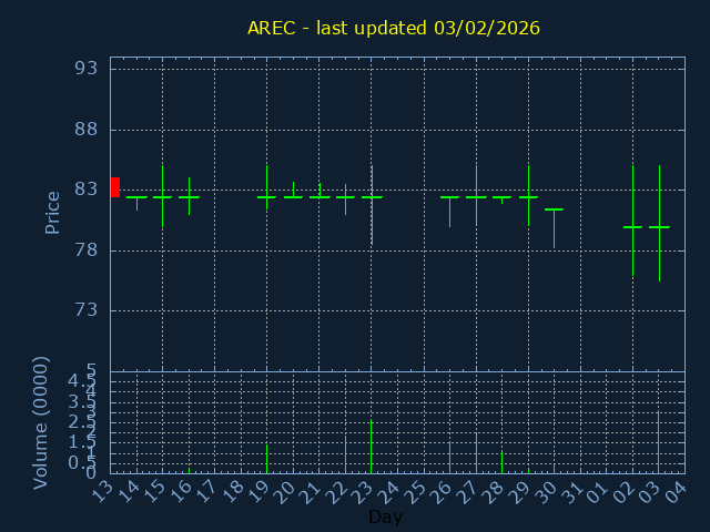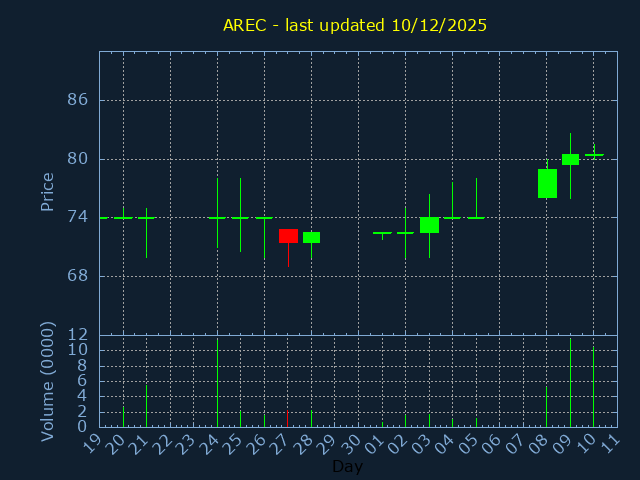 Click here for AREC Candlestick History