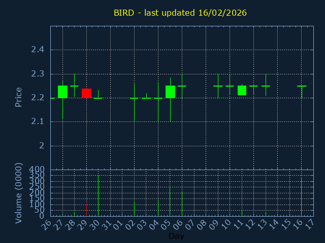 Click here for BIRD Candlestick History
