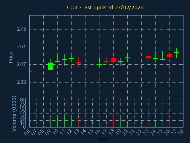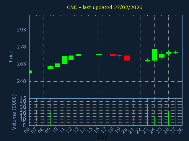 Current Price:275, -8.900, -3.13%