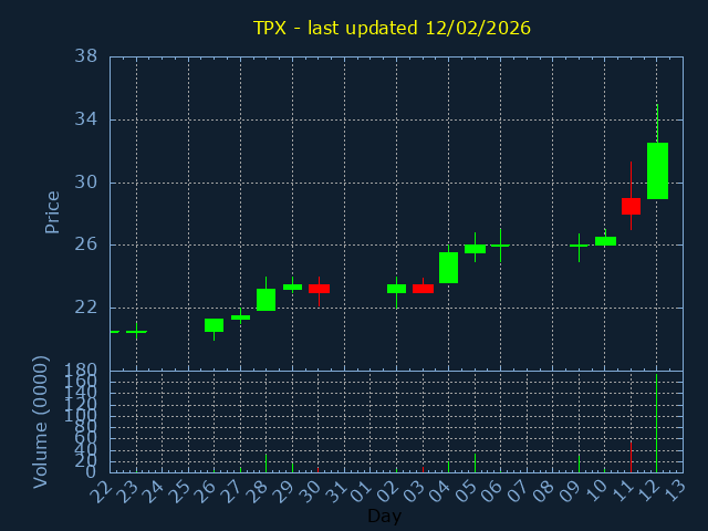 Click here for TPX Candlestick History