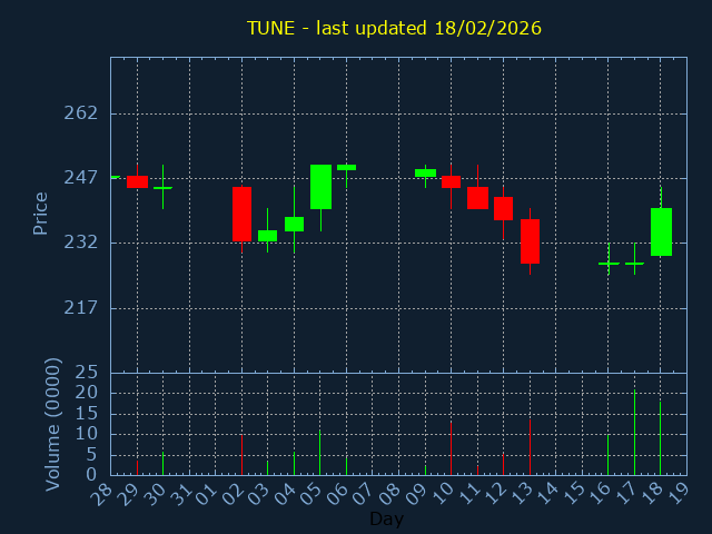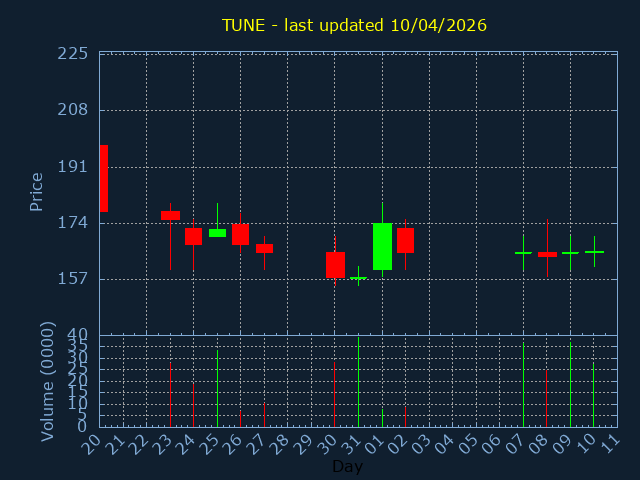 Click here for TUNE Candlestick History
