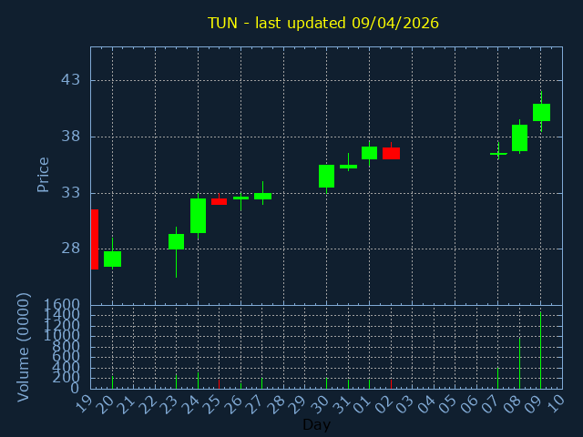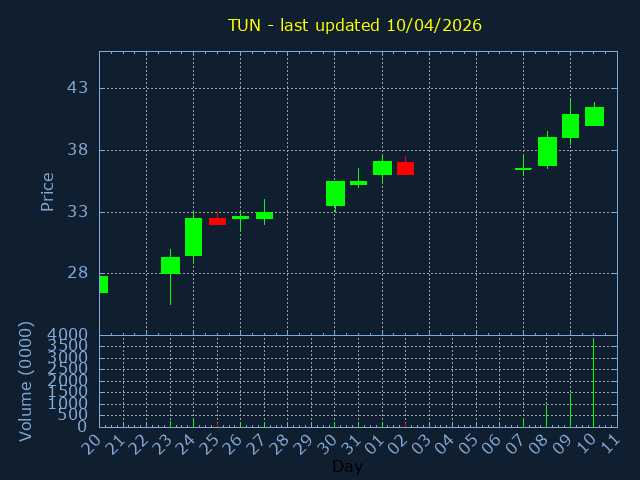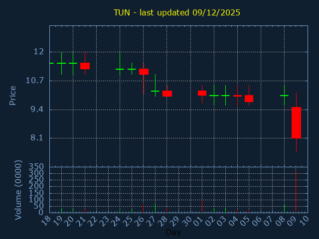 Click here for TUN Candlestick History