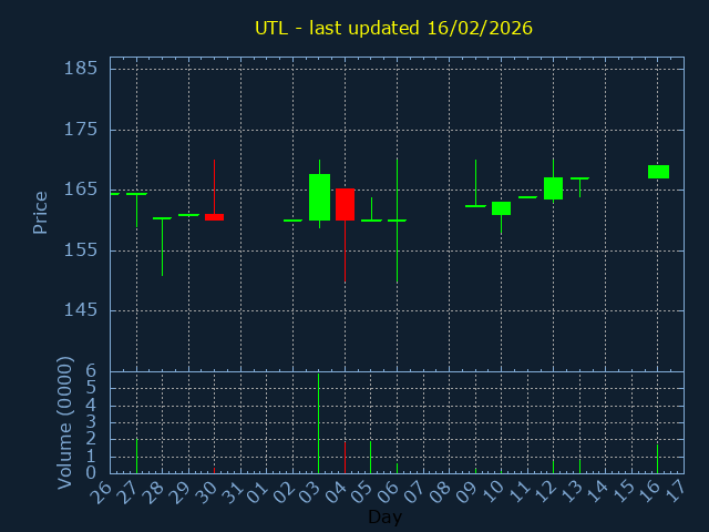 Click here for UTL Candlestick History