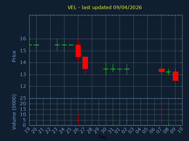 Click here for VEL Candlestick History