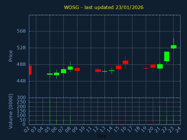 Click here for WOSG Candlestick History