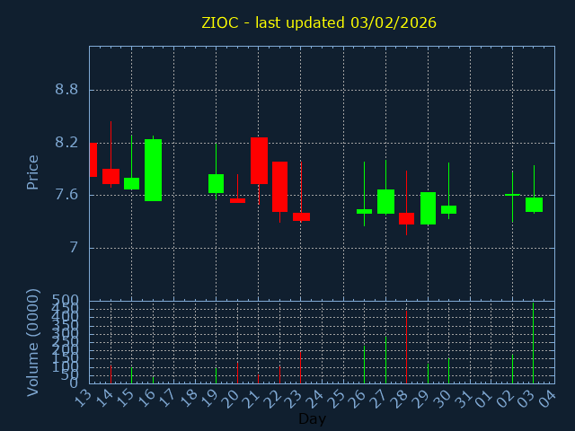 Click here for ZIOC Candlestick History