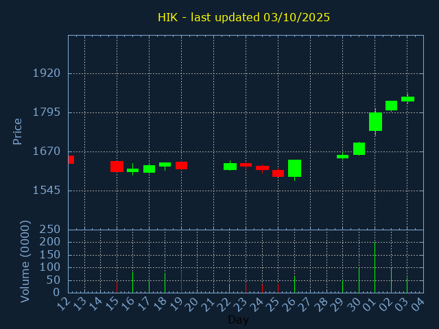 Current Price:1291.5, +8.500, +0.66%