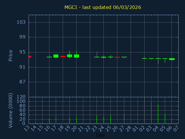 Click here for MGCI Candlestick History