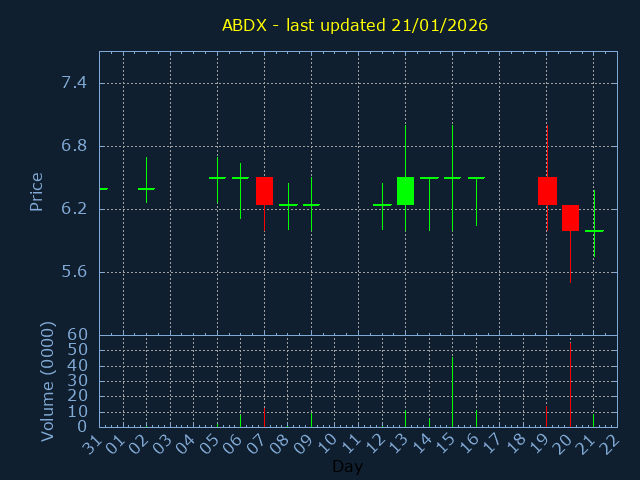 Click here for ABDX Candlestick History