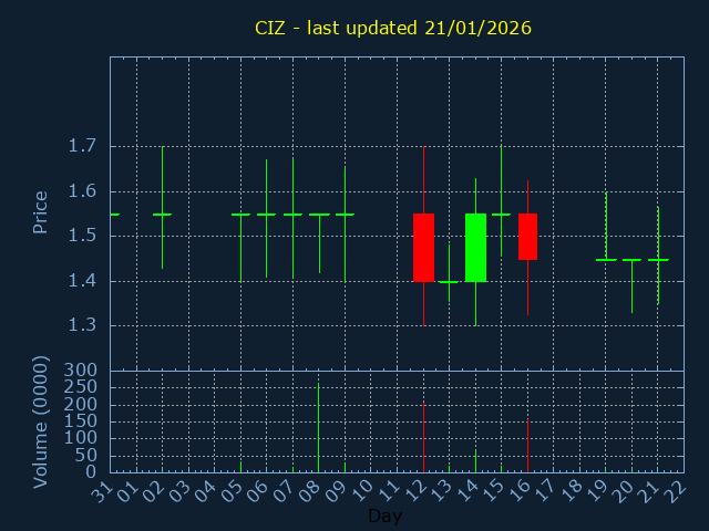 Volume:21 - vs daily avg (0%)