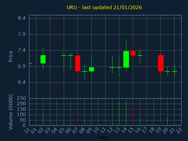 Click here for URU Candlestick History