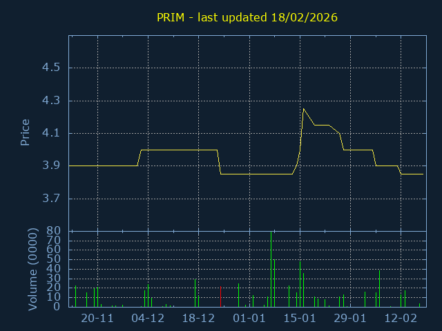 Click here for PRIM Candlestick History