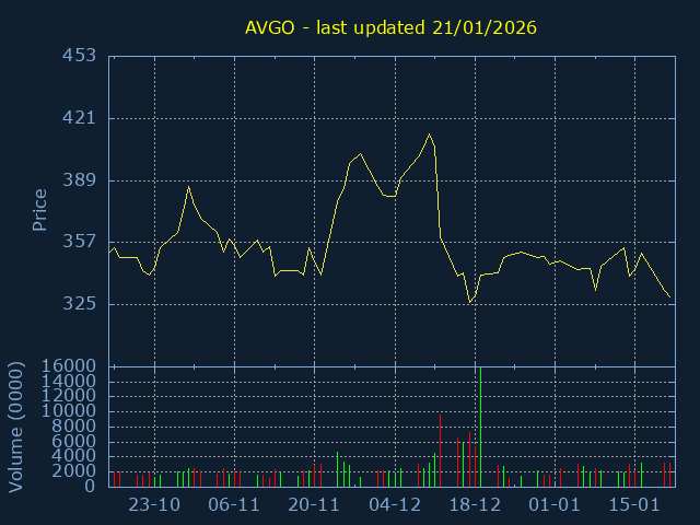 3Month Low:290.37. 3Month High:359.91. Representing a 23.95% trading range