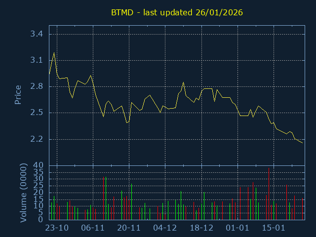 Current Price:3.68, -0.120, -3.16%