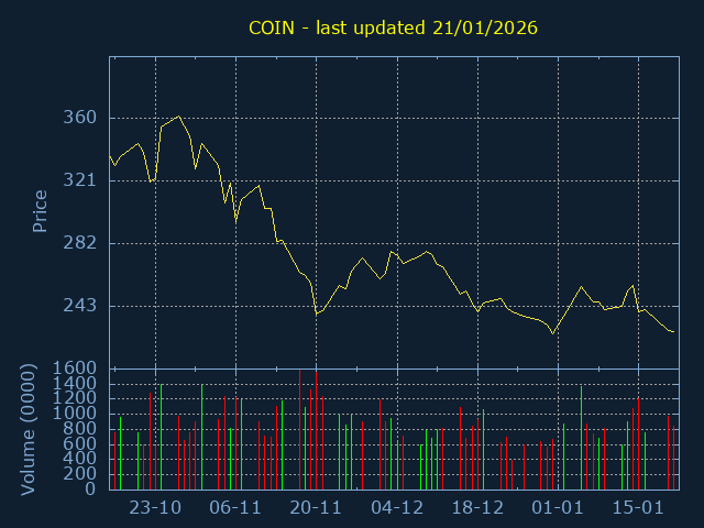 3Month Low:206.32. 3Month High:336.27. Representing a 62.98% trading range