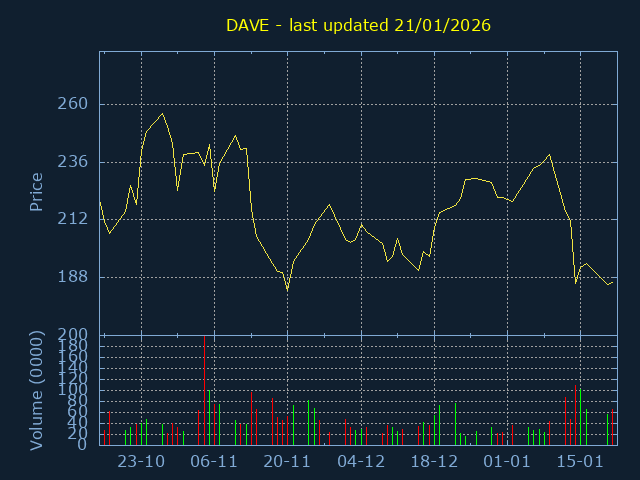 3Month Low:182.99. 3Month High:245.67. Representing a 34.25% trading range