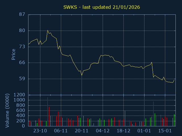 3Month Low:64.92. 3Month High:78.04. Representing a 20.21% trading range
