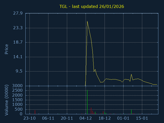 3Month Low:4.05. 3Month High:64.4. Representing a 1490.12% trading range