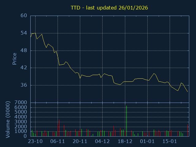 3Month Low:27.3. 3Month High:39.9. Representing a 46.15% trading range