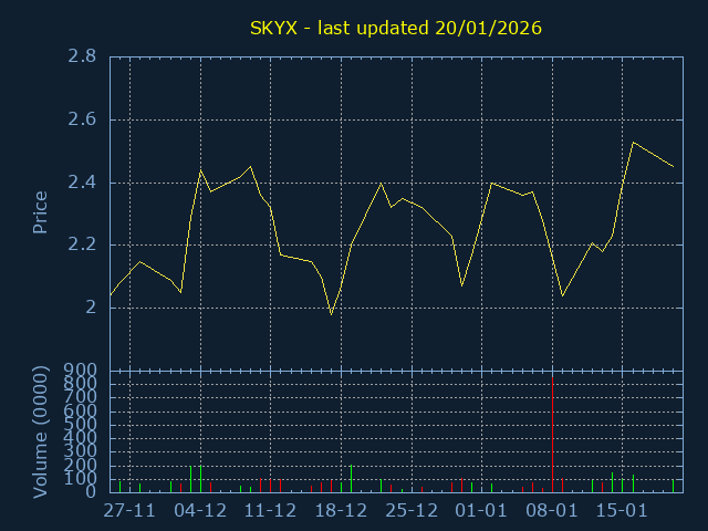 Click here for SKYX Candlestick History