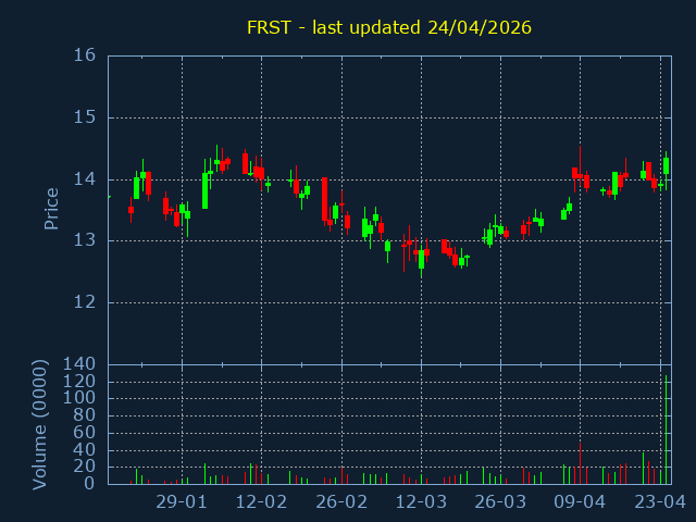 Click here for FRST Candlestick History