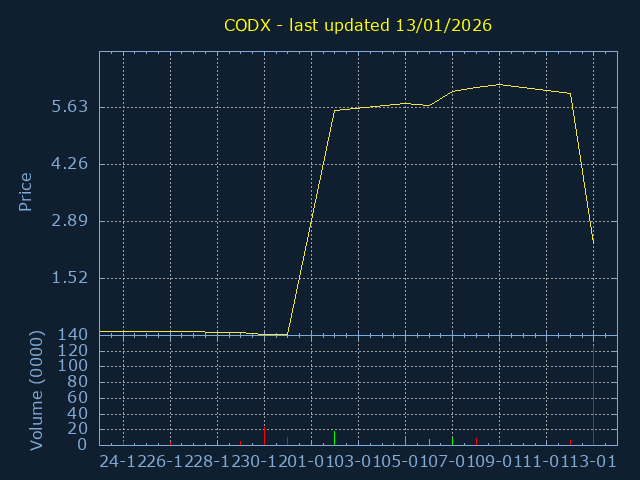 Click here for CODX Candlestick History
