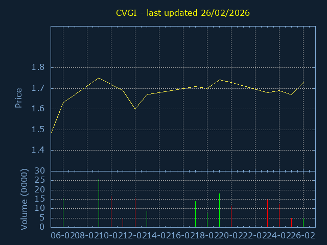 Click here for CVGI Candlestick History