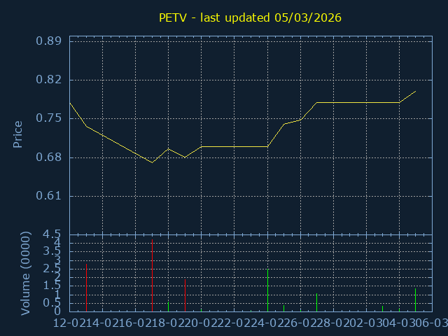 Click here for PETV Candlestick History