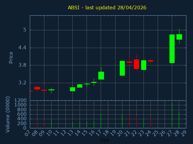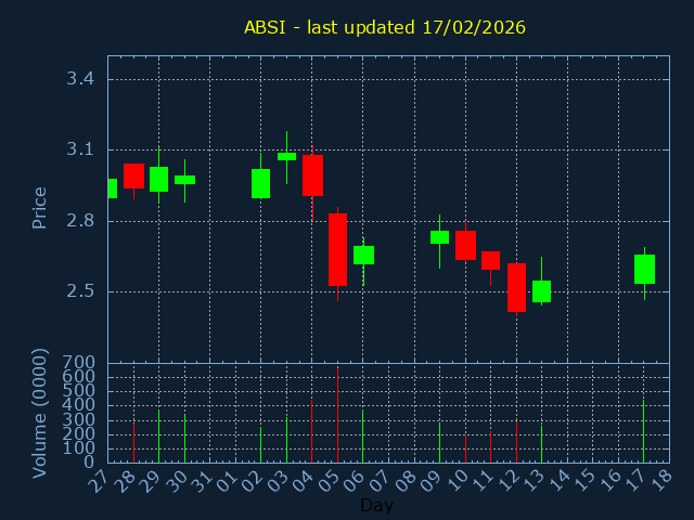 Click here for ABSI Candlestick History