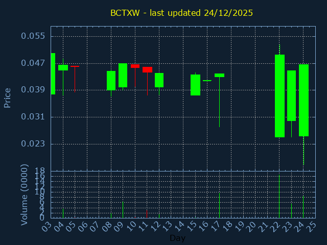 Click here for BCTXW Candlestick History