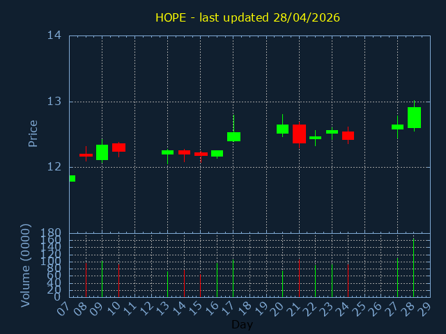 Current Price:13.1, +0.120, +0.92%