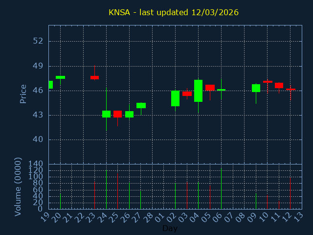 Current Price:12.72, -0.280, -2.15%