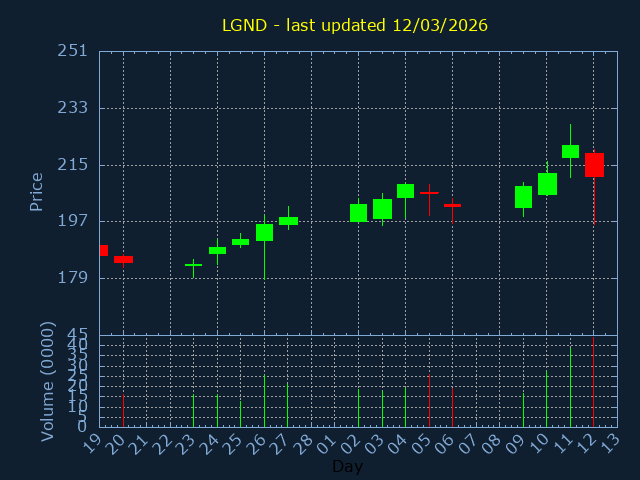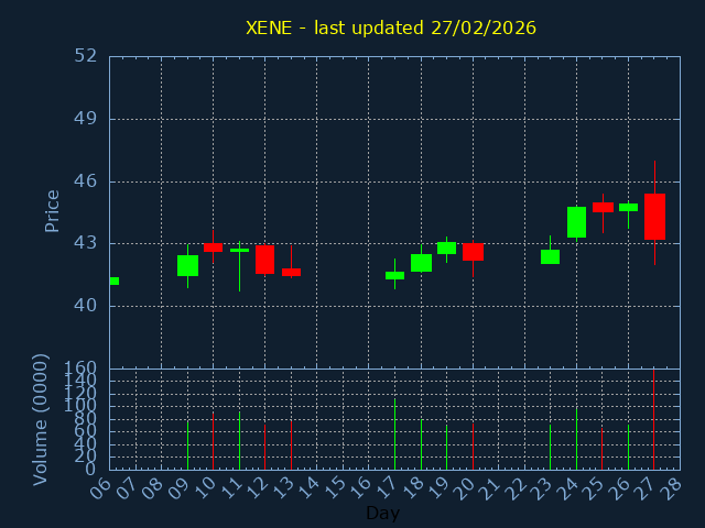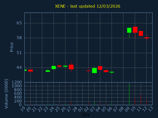Click here for XENE Candlestick History