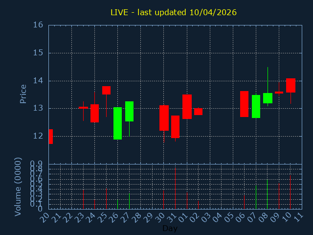 Current Price:12.79, -0.610, -4.55%
