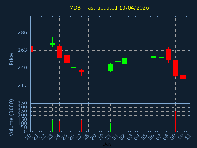 Current Price:280.14, -7.720, -2.68%