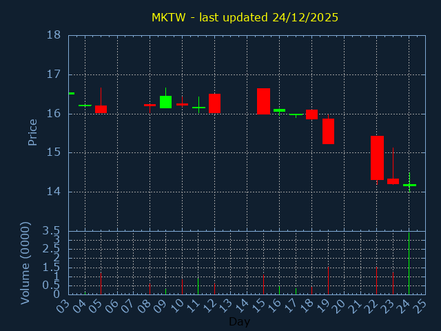Click here for TKNO Candlestick History
