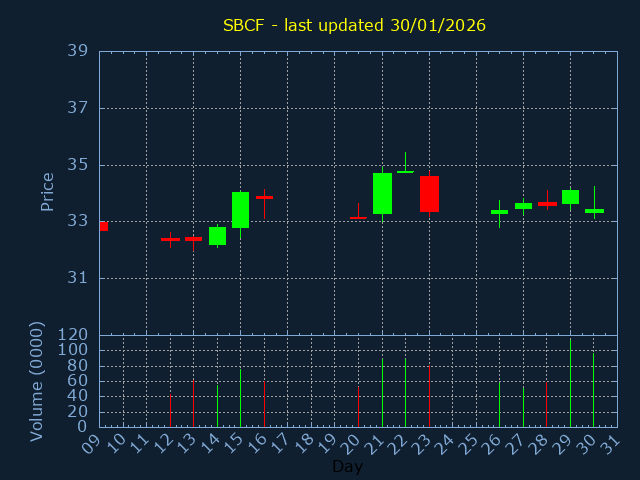 Click here for WTBA Candlestick History