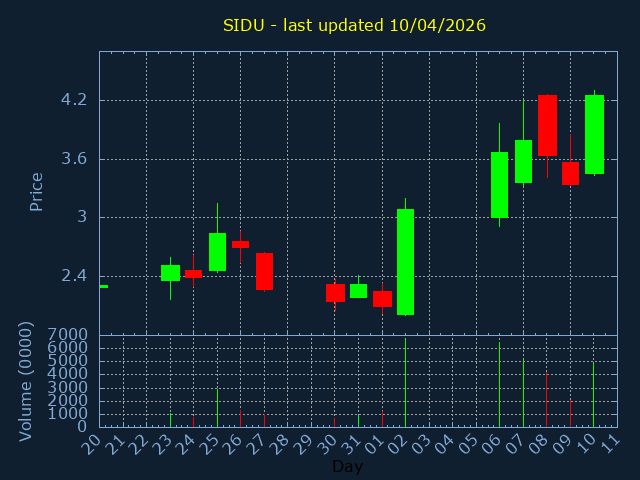 Current Price:3.96, -0.490, -11.01%