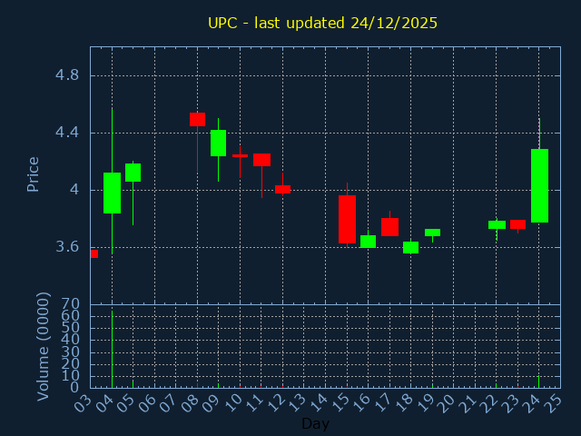 Click here for UPC Candlestick History