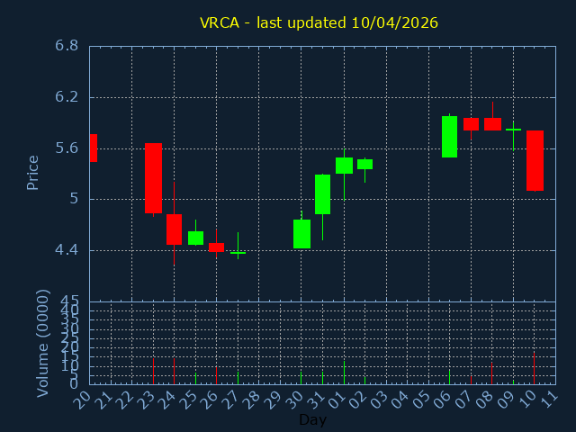 Click here for VRCA Candlestick History
