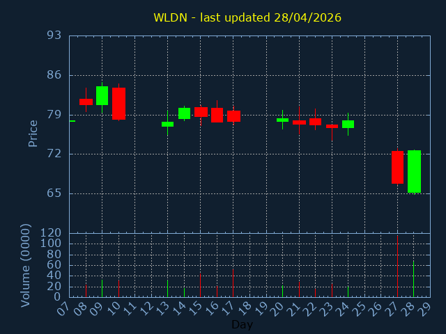Click here for WLDN Candlestick History