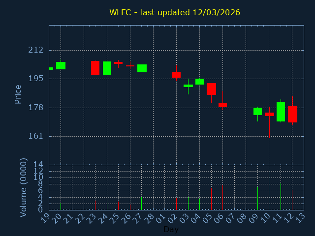 Click here for WLFC Candlestick History