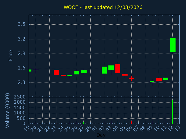Click here for WOOF Candlestick History